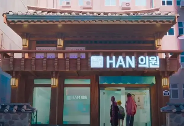 In one scene, the characters visit a hanuiwon (한의원, Korean traditional clinic) and a street resembling Jegi-dong Herbal Medicine Market in Seoul.